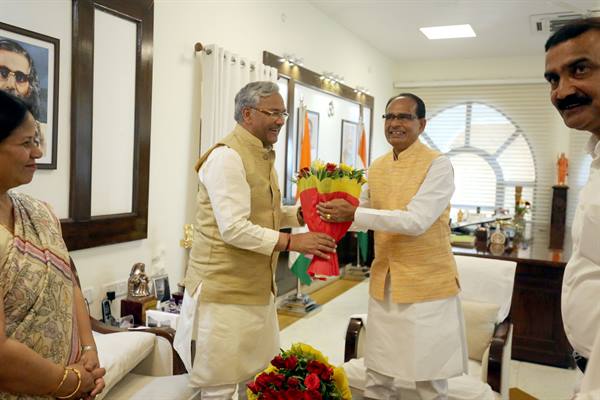 मुख्यमंत्री श्री शिवराज सिंह चौहान से उत्तराखंड के पूर्व मुख्यमंत्री श्री त्रिवेंद्र सिंह रावत ने निवास कार्यालय में सौजन्य भेंट की।
